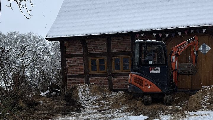 Begonnen haben wir inzwischen mit der Verbesserung der elektrischen Infrastruktur unter der Remise und im Haus. Dafür war sogar ein kleiner Bagger zu Besuch, der die Kabel unter die Erde gebracht hat. So wird die Stromversorgung selbst an Tagen mit höherem Bedarf – zum Beispiel wenn gleichzeitig Bewässerung und Kühlung laufen – zuverlässiger.