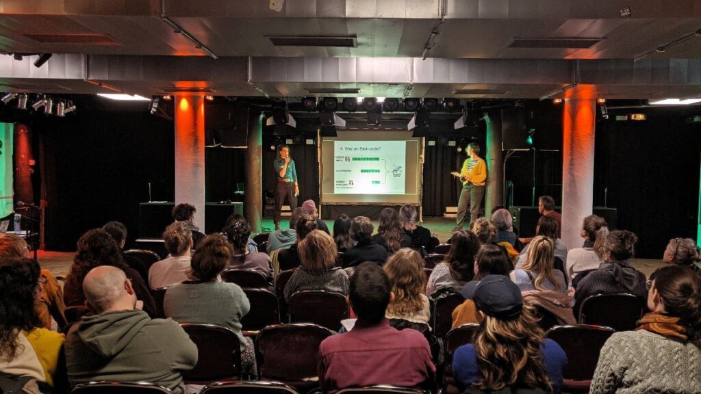 Am 22. Februar fand unsere Bietrunde im Lagerhaus statt. Wir haben uns sehr gefreut, dass wir erstmalig dort einen Veranstaltungssaal nutzen konnten und sich trotz des strömenden Regens an dem Tag so viele Mitglieder vor Ort zusammengefunden haben. Es ist praktisch die einzige Gelegenheit im Jahr, an der wir in so großer Runde beieinander sind, Euch vom Hof erzählen und Eure Fragen beantworten können und wieder einmal viele bekannte und auch neue Gesichter in echt sehen können. Für die Aktiven im Verein und die Gärtner*innen ist es auch immer eine besondere Gelegenheit, zu sehen, wer bei uns aktuell dabei ist und unser Gemüse am Ende isst und sich niedrigschwellig bei Kaffee und Kuchen auszutauschen. So hat sich z.B. eine engagierte Gruppe zusammengefunden, die dieses Jahr gerne Rhabarberexperimente auf dem Acker starten möchten, das finden wir toll. Außerdem hat ein Stimmungsbild ergeben, dass der Großteil der anwesenden Mitglieder sich für eine kleine Gehaltserhöhung der Angestellten als Inflationsausgleich für diese Saison ausgesprochen hat. Wenn wir weiterhin ein paar Anteile dazu bekommen, müsste das voraussichtlich mit dem aktuellen Finanzplan auch umsetzbar sein. Auch wurde ein großer Wunsch nach einem Trinkwasseranschluss auf dem Hof deutlich. Wir müssen schauen, ob auch das dieses Jahr finanziell umsetzbar sein wird.