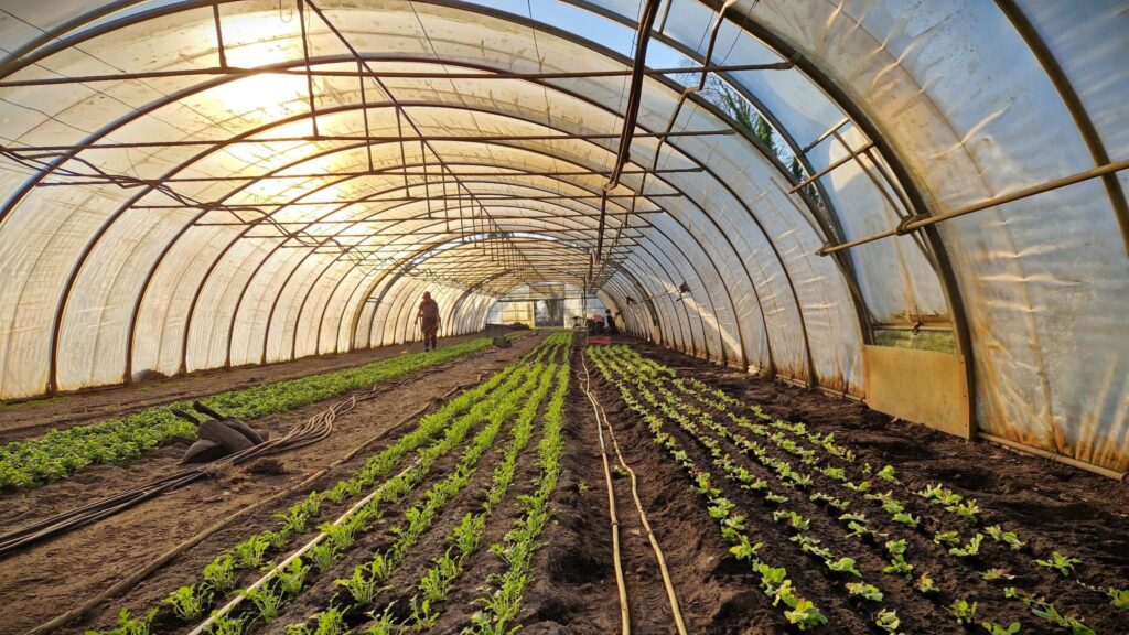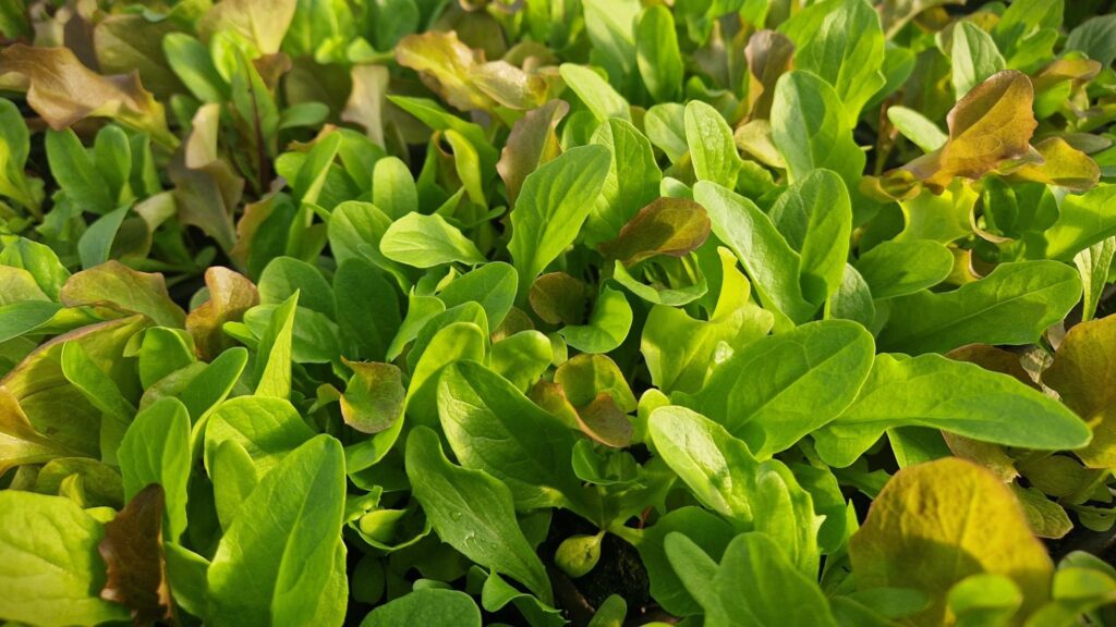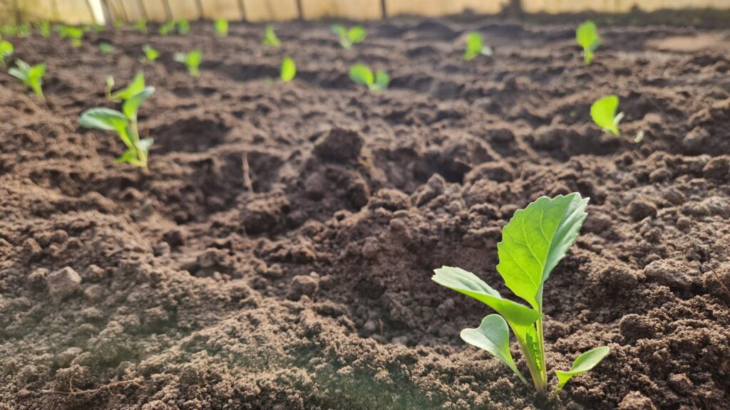 Und auch die Folientunnel füllen sich fleißig. In diesen Wochen sind Spitzkohl, Kohlrabi, Pak Choi, Fenchel, rote Bete, Wirsing und Lauchzwiebeln in den Boden gekommen. Und in unserem großen Tunnel sind bereits Pflücksalate, Rauke, Asiasalat und Petersilie kräftig am Wachsen und freuen sich über die neue Wärme. Wir haben auch weiter innen die orangenen Eisenrückstände aus früheren Zeiten sowie Laub und Moos von außen von den Tunneln geputzt und die Pflanzen bekommen endlich wieder mehr Licht!